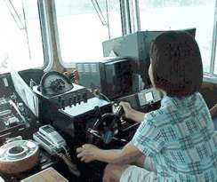 | 海洋高校の船って大きいんだなー。 巡視船の操縦はとってもたのしい。 |  |