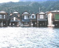 天橋立図には小船が多く画かれ 漁村・貿易港としても栄えて いた様子が伺えます。 今ではすっかり有名になった 舟屋も伊根町だけじゃなく ここにもあります。 |