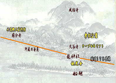 <絵の中の丹後府中を歩く> 一説によると雪舟がここを画いたのは82歳という高齢であったといいます。 雪舟の遺作ともいえる「天橋立図」に画かれた神仏の聖地 古人<いにしえびと>あこがれの地、それが丹後府中なのです。 |