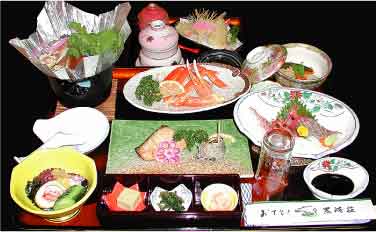 ![]() かにフルコース(写真の盛りは4人前) |