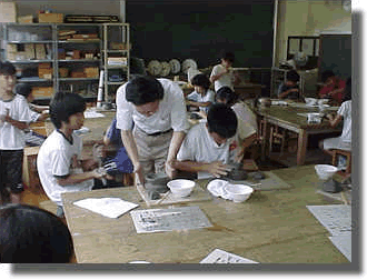 丹後郷土資料館の長谷川先生の指導を受けながら縄文式、弥生式土器作りに挑戦しています。 このあとは、野焼きで土器を焼き上げます。